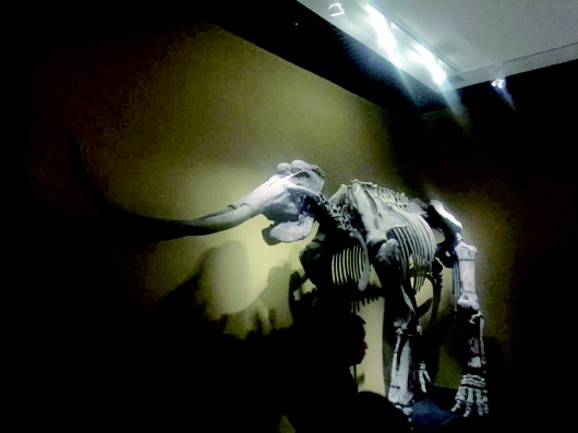 平?jīng)霾┪镳^隴東劍齒象化石模型。