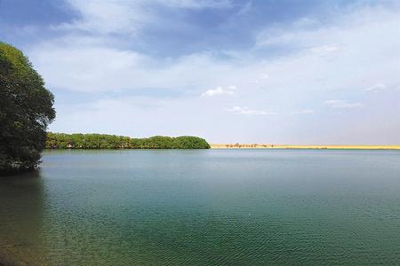 在渥洼池畔舉目遠(yuǎn)眺,在阿爾金山皚皚白雪的映襯下,偌大的渥洼池顯得安靜祥和,廣闊的水域就像一面鏡子,鑲嵌在大漠深處,在陽光的折射下顯得格外深邃而內(nèi)斂。渥洼池畔茂密的灌木林和高大密集的蘆葦蕩,將一汪湖水浸染的泛著黛綠,蘆葦和灌木在湖水滋潤下郁郁蔥蔥,高低錯(cuò)落有致,大有阡陌縱橫之勢。西岸不遠(yuǎn)處,南北迤邐著一座兩公里有余的沙坡頭,猶如一條盤旋的黃龍,亙在湖水的西邊搖頭擺尾,它曾經(jīng)以每年兩至三米的速度,肆無忌憚地向渥洼池水域逼進(jìn)。不過,在陽關(guān)保護(hù)區(qū)的精心培育下,一片密集的蘆葦,已經(jīng)爬到了沙梁頂上,將這條黃龍死死地鎖在原地,動(dòng)彈不得。