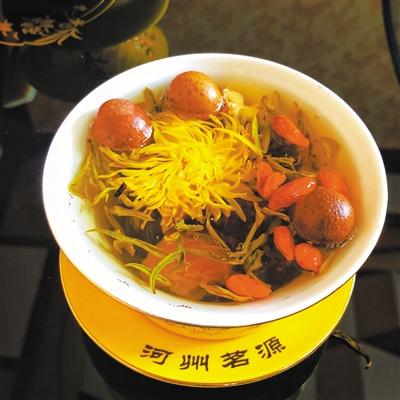 茶盤里除茶葉之外,還有冰糖、枸杞、桂圓、紅棗、杏干、葡萄干、玫瑰花、菊花等。你可以根據(jù)自己的喜好,選幾樣放在蓋碗里,伙計(jì)用滾滾的“牡丹水”(臨夏對(duì)開水的戲稱)挨個(gè)澆在這些蓋碗里,頓時(shí),茶葉、枸杞、紅棗、菊花的香味伴著冰糖的“嗞嗞”聲升騰開來(lái)。