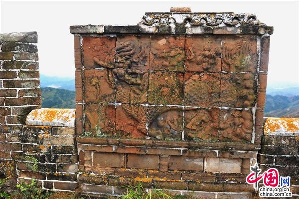 而且在麒麟的周邊,還搭配了許多小圖案做點(diǎn)綴,比如小鹿、小鳥,甚至還有靈芝。很多文物專家說,麒麟影壁墻是萬里長(zhǎng)城上極為罕見的遺跡。麒麟在我國古代是傳統(tǒng)的祥云瑞獸,在明代更是一個(gè)等級(jí)非常高的瑞獸。不少長(zhǎng)城專家表示,麒麟影壁出現(xiàn)在金山嶺長(zhǎng)城上,也充分表現(xiàn)了戍守長(zhǎng)城的官兵祈盼和平、吉祥,憧憬幸福生活的美好愿望。