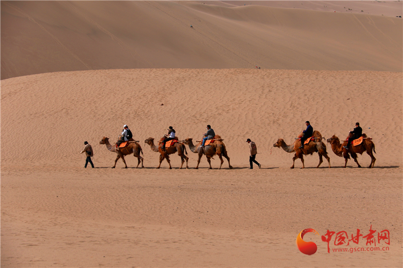5月19日是中國旅游日,游客來到甘肅省敦煌市鳴沙山月牙泉景區(qū),欣賞大漠壯美風(fēng)光,體驗(yàn)獨(dú)特絲路風(fēng)情。