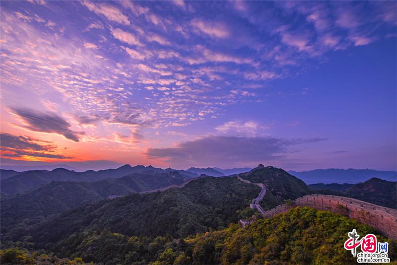 變幻莫測(cè)的天空,變化無(wú)窮的絢麗多彩,就是金山嶺長(zhǎng)城燦爛的七月。