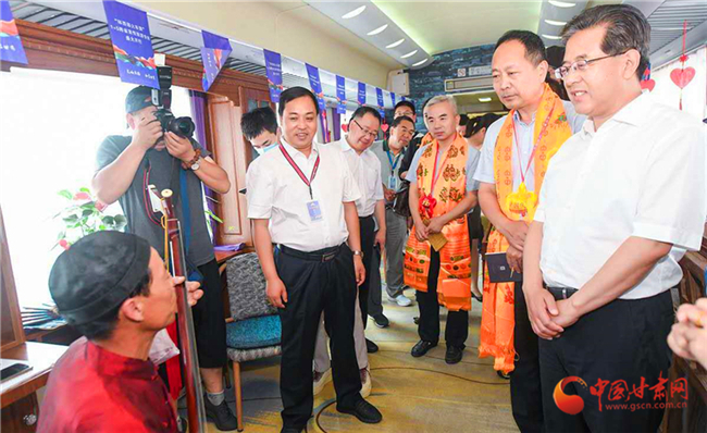 專列到達西安南站后,陜西省文旅廳及文旅相關部門對“環(huán)西部火車游”專列的到來表示熱烈的歡迎,陜西省文旅廳負責人在甘肅省委宣傳部副部長、省文旅廳黨組書記、廳長陳衛(wèi)中和武威市文體廣電和旅游局負責人的陪同下參觀了“環(huán)西部火車游”武威館,并欣賞了國家級非遺項目“涼州賢孝”表演。