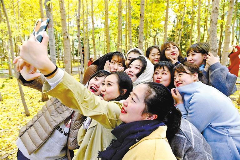 近日,蘭州植物園的銀杏樹金黃一片,吸引眾多市民前去游玩拍照。秋高氣爽,藍天白云下,蘭州植物園內(nèi)銀杏樹進入最佳觀賞期,猶如披上了“黃金甲”,讓魅力無窮的植物園又添新景,金黃色的銀杏樹在陽光的照射下令人陶醉,成為深秋一道迷人的風景。