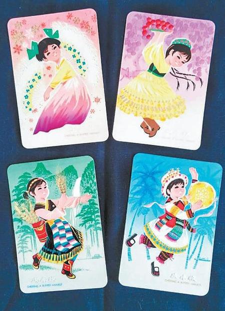 上世紀70年代,國家把進出口公司產(chǎn)品當作“拳頭”產(chǎn)品,為國家換取外匯。甘肅省也和其他省份一樣,作了積極的努力,省進出口公司于1976年制作了四枚一套的《慶豐收》年歷片,以漢族、維吾爾族、藏族、壯族少女為圖案,表現(xiàn)了良好的藝術創(chuàng)作風格。