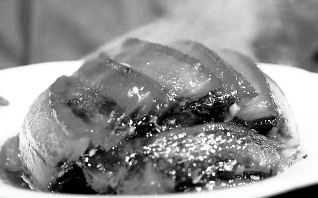 用青泥黑豬制作的紅燒肉并不像南方的菜系那樣注重糖色,在燒制過(guò)程中也沒(méi)有填入許多祛腥的調(diào)料,讓青泥黑豬特有的香味自己發(fā)散出來(lái),在口齒間縈繞不絕,這道菜火候也相當(dāng)好,入口即化,那種“熔融”的快感讓味蕾瞬間綻放。