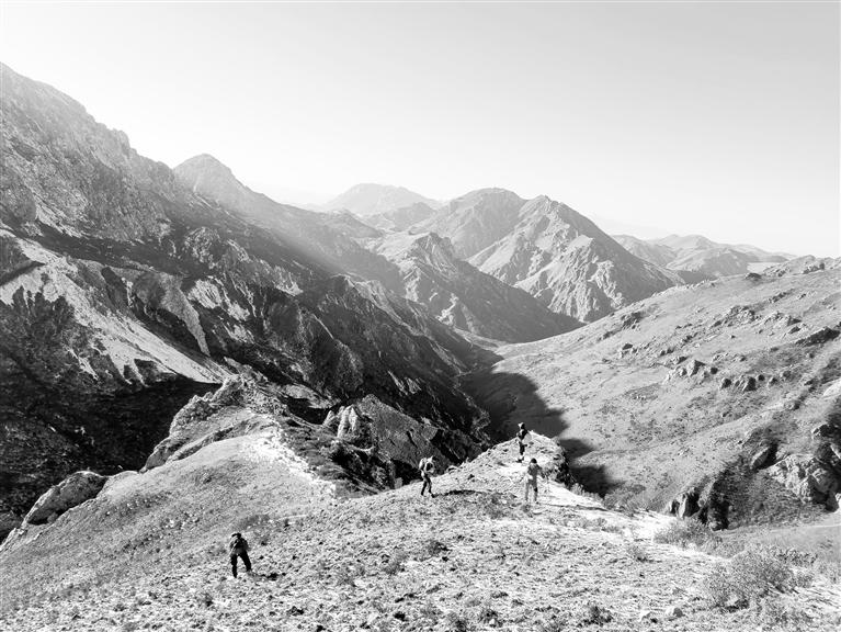 “海拔三千九,人在云里走;不知路多遠(yuǎn),轉(zhuǎn)灣九十九。”這是當(dāng)?shù)厝藢Φ锹豆巧降拿枋?,我們這次在山里徒步約8小時,爬升高度近900米,行程14.5公里,最高處海拔為3850米。