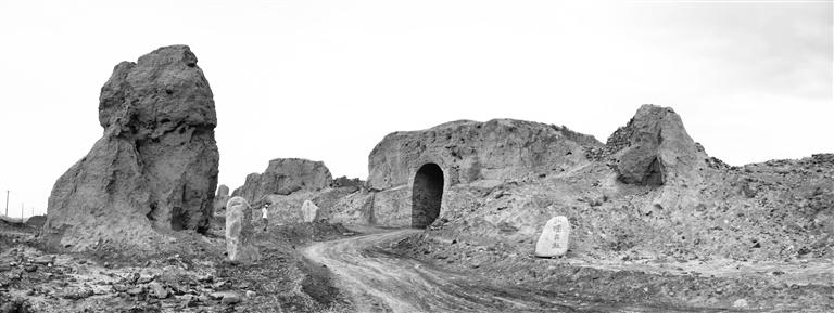 在鄉(xiāng)村公路邊,有人工擺放的怪石,上面有各種字體的書(shū)法石刻。這是山丹縣傾力打造的中國(guó)西部長(zhǎng)城文化書(shū)法石刻長(zhǎng)廊的一部分,這個(gè)石刻長(zhǎng)廊工程陳列了600多方名家書(shū)法石刻,到峽口古城前還有模擬太極八卦圖的展示……