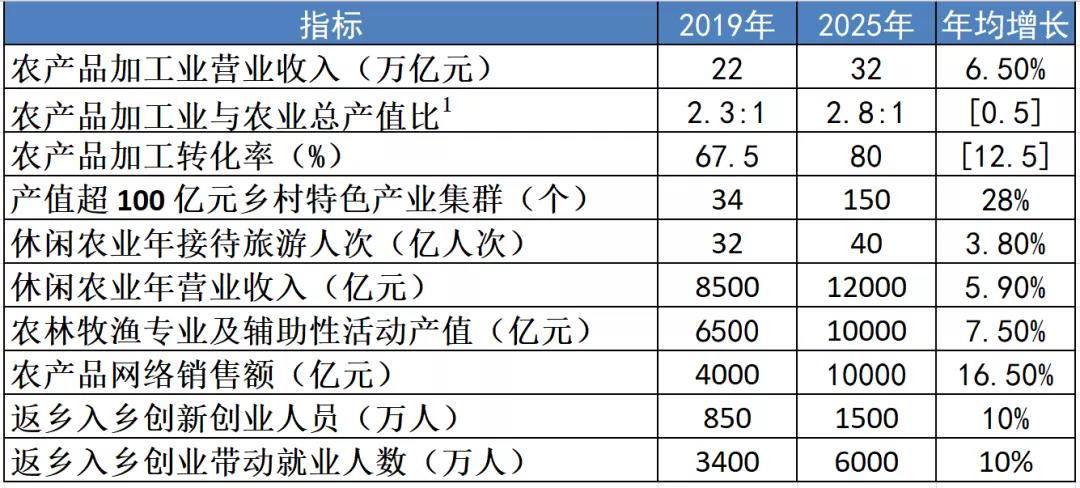 到 2025 年,鄉(xiāng)村產(chǎn)業(yè)體系健全完備,鄉(xiāng)村產(chǎn)業(yè)質(zhì)量效益明顯提升,鄉(xiāng)村就業(yè)結(jié)構(gòu)更加優(yōu)化,產(chǎn)業(yè)融合發(fā)展水平顯著提高,農(nóng)民增收渠道持續(xù)拓寬,鄉(xiāng)村產(chǎn)業(yè)發(fā)展內(nèi)生動(dòng)力持續(xù)增強(qiáng)。