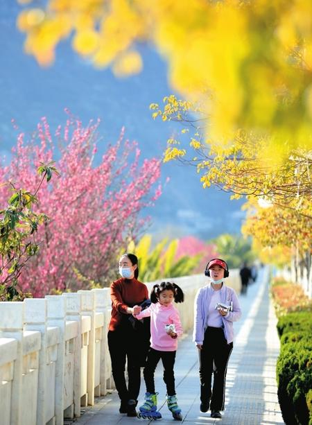 開(kāi)學(xué)前夕,孩子們?cè)诹G花明、青草萌芽的市區(qū)濱江濕地公園里擁抱春色,告別寒假。映襯著孩子們活潑的身影,玉蘭、紫葉李、杏花、櫻花盡情綻放,到處一派春意盎然,透著勃勃生機(jī)。記者 冉創(chuàng)昌 攝影報(bào)道