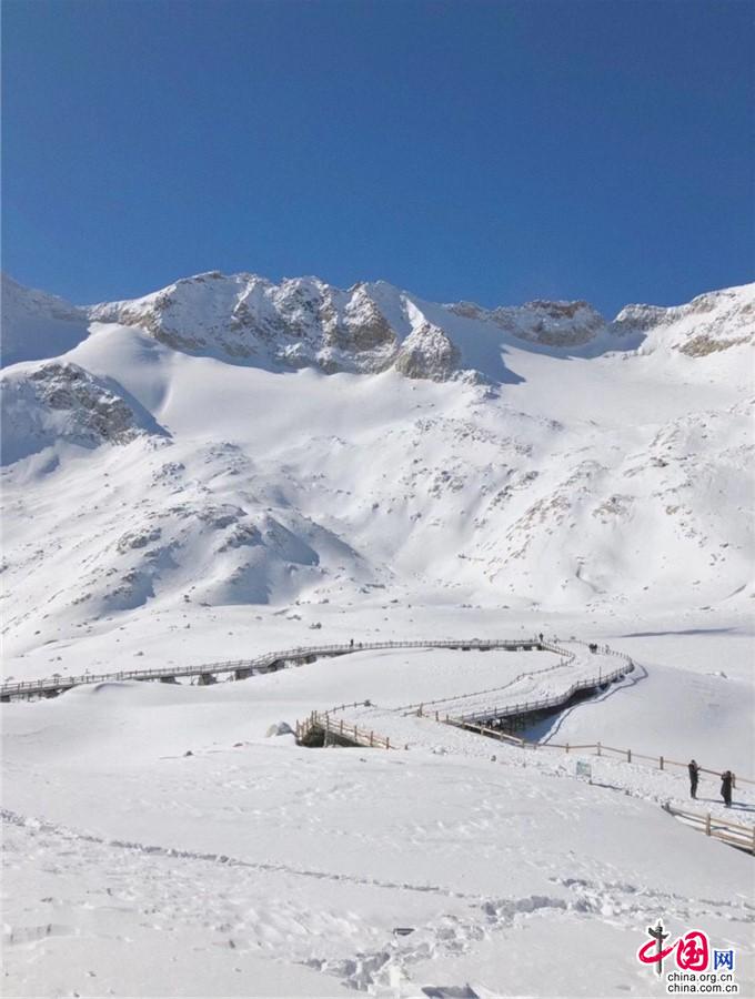 大雪紛飛 快來(lái)達(dá)古冰川賞春天的第一次雪吧