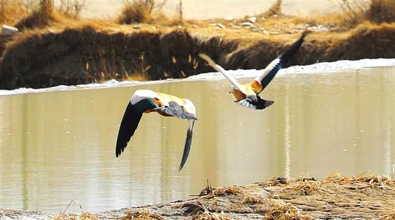 3月下旬,在武威市天祝縣華藏寺鎮(zhèn)金強河邊,到處都有赤麻鴨和白鷺的身影。它們或自由游弋,或盤旋飛翔……