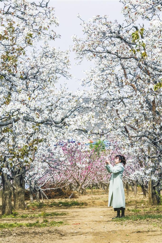 什川梨園觀賞花正當時。首席記者 田蹊 攝