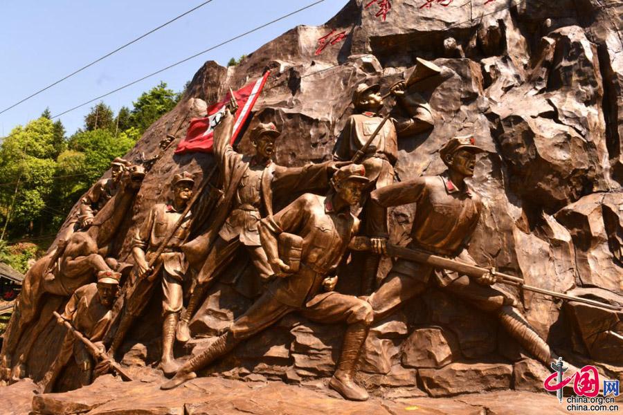 如今,這條紅色旅游線路是前來雪峰山旅游的必走之地。旅客在陳列室里閱讀紅二、六軍團(tuán)經(jīng)過之情形;在紅軍亭,旅客仿佛看到聽到紅軍父母送子、妻子送丈夫的3000溆浦兒女參加紅軍的感人場面;在“勝利的號角”前,旅客紛紛拍照,表達(dá)一定在新的歷史進(jìn)程中作出新的貢獻(xiàn);在“紅軍長征”群雕前,小孩子們最感興趣,在這里敬禮,在這里發(fā)誓,長大后一定弘揚(yáng)紅軍長征精神……