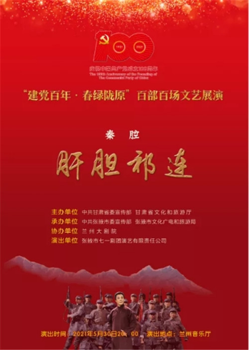 中國(guó)甘肅網(wǎng)5月28日訊(本網(wǎng)記者 宋芳科)5月30日晚,剛剛斬獲第六屆甘肅戲劇紅梅獎(jiǎng)大賽“紅梅劇目獎(jiǎng)”第一名的好成績(jī)的秦腔戲《肝膽祁連》,將在蘭州音樂(lè)廳精彩上演?!陡文懫钸B》以真實(shí)的歷史故事改編,講述了民主人士高金城營(yíng)救紅西路軍戰(zhàn)士的感人故事。屆時(shí),中國(guó)甘肅網(wǎng)將現(xiàn)場(chǎng)直播,歡迎廣大網(wǎng)友點(diǎn)擊進(jìn)入直播間,重溫一段波瀾壯闊而又感人至深的歷史,一起向祁連英魂高金城致敬。