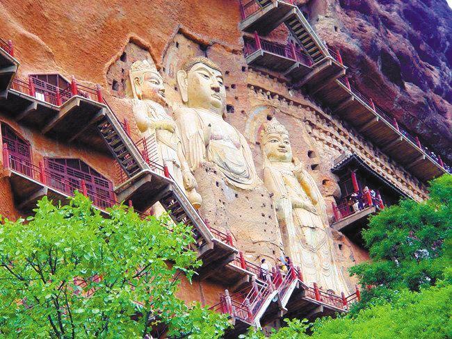 麥積山石窟與敦煌莫高窟同為四大石窟。堪稱5-18 世紀(jì)世界泥塑藝術(shù)史上的瑰寶,素有“東方雕塑陳列館”之稱。2014年作為中哈吉三國聯(lián)合申遺的“絲綢之路:長安-天山廊道的路網(wǎng)”中的一處遺址點(diǎn)成功列入《世界遺產(chǎn)名錄》。