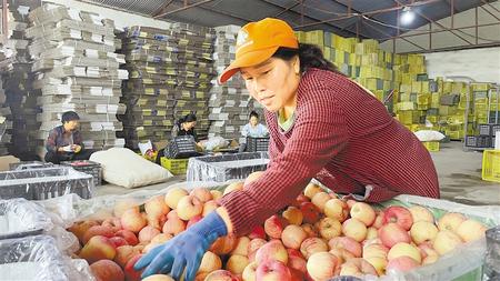 莊浪縣萬(wàn)泉鎮(zhèn)的蔬果保鮮庫(kù)里,工人將存放的蘋(píng)果打包發(fā)往外地市場(chǎng)。