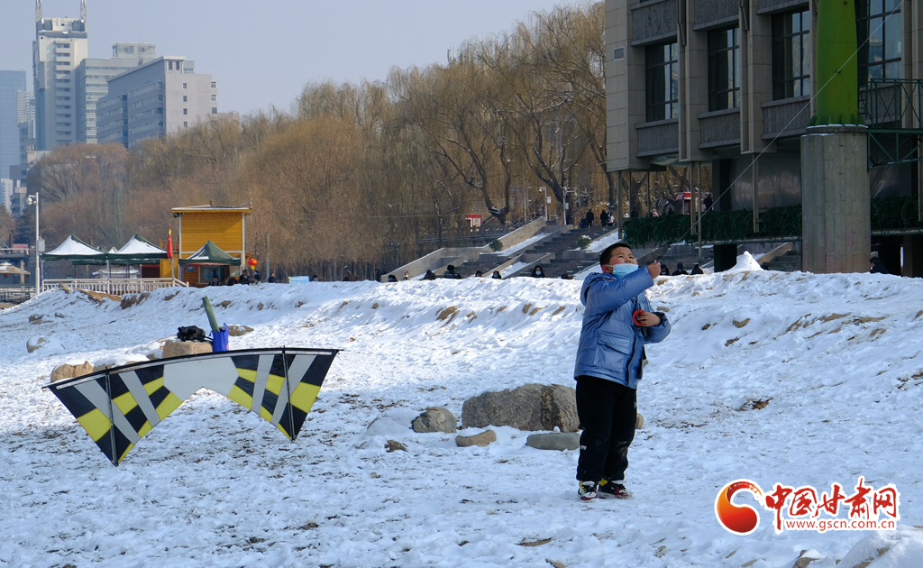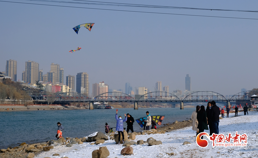 新春佳節(jié),早春時(shí)光,2月7日,雪后天晴,市民走出家門來到黃河之濱放風(fēng)箏。