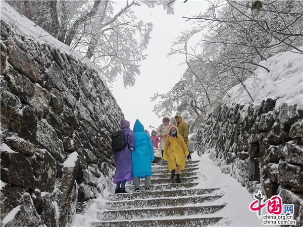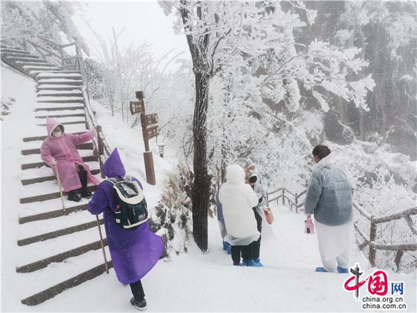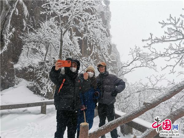原標(biāo)題:安徽黃山又又又降雪啦!驚羨游客 催熱賞雪游