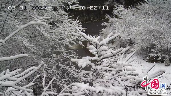 入春不久,達(dá)古冰川降下多場春雪,春日的雪花一路踏歌而來,帶著千般嫵媚萬種風(fēng)情,裝扮著景區(qū)初露紅裝的早春。