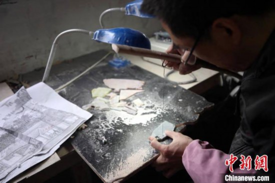 制作彩石鑲嵌作品 王志 攝