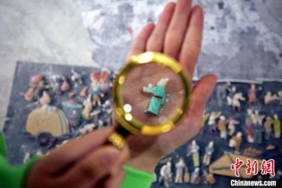 “制作這件彩石鑲嵌作品要有很深的功底,特別是對(duì)人物臉部細(xì)節(jié)的處理,要想做到3000多個(gè)人物神態(tài)逼真,難度非常大。”李成者說,有的人物只有米粒大小,要拿著放大鏡雕刻,對(duì)師傅的手藝要求非常高。