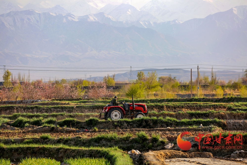 谷雨時節(jié),甘肅省酒泉市肅州區(qū)西洞鎮(zhèn)農(nóng)民搶抓農(nóng)時,忙碌在田間地頭,遠處的祁連山與近處的田園風光,構(gòu)成了一副美麗的春日農(nóng)耕畫卷。