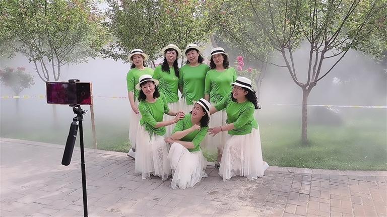 上午9時30分,水池中漸漸漫出淡淡的煙霧,時而稀薄,時而濃厚,隨著陣陣微風飄蕩在小橋流水間。“準備放音樂,我在原地來回轉(zhuǎn),你用手機豎屏拍。”……記者穿梭于人群間,這樣的聲音不絕于耳。“姐妹花”龔大姐和田大姐身穿正裝,各自圍上了顏色艷麗的圍巾,正站在鏡頭前直播。“這里非常美,像仙境一樣。綠化也做得特別好,公園里的綠植和鮮花種類繁多,很好看。我們是第一次來,希望蘭州多打造一些這樣的美景。”