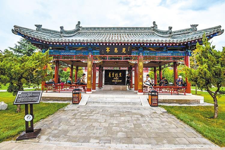太極殿后是后花園,即伏羲廟第四院。這也真正體現(xiàn)了宮廷式建筑“前有宮,次有寢,后園林”的規(guī)制。“見(jiàn)易亭”居中,坐落在綠茸茸的大草坪上。園內(nèi)植木育花,壘石筑山,碧草修竹,處處風(fēng)景如畫(huà)。