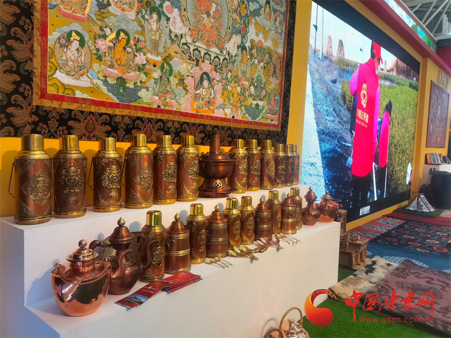 甘南展館注重精心構(gòu)建主展館與產(chǎn)業(yè)展區(qū)的布展工作相結(jié)合,以全面展示和提升甘南紅色文化和農(nóng)牧業(yè)產(chǎn)業(yè)化、旅游發(fā)展水平為思路,集中展示甘南州重點企業(yè)在品牌打造、產(chǎn)品研發(fā)、市場營銷等方面的特色,展示甘南牦牛、藏羊、洮硯、唐卡、銅器、藏香、針織等特色產(chǎn)品的產(chǎn)業(yè)優(yōu)勢,以此吸引一批有實力的農(nóng)畜產(chǎn)品加工營銷企業(yè)參與甘南州產(chǎn)業(yè)開發(fā)與產(chǎn)品培育。