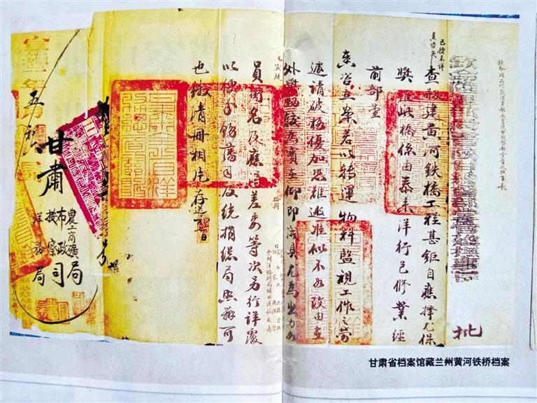 在古金城蘭州架設(shè)橫跨于黃河南北兩岸的鐵橋,曾是左宗棠的夢想,只因當(dāng)時(shí)洋商索價(jià)過高而作罷。30年后,正值清末實(shí)行新政,黃河鐵橋在陜甘總督升允和彭英甲的任上創(chuàng)修成功。建橋過程慘淡經(jīng)營,艱苦備至,已人所共知。好在建設(shè)黃河鐵橋形成的檔案,歸檔于甘肅農(nóng)工商礦總局,沒有存于當(dāng)時(shí)的布政使司,幸運(yùn)地躲過了民國二年那一劫。甘肅農(nóng)工商礦總局后更名為甘肅省署實(shí)業(yè)廳,民國十六年(1927年)甘肅省政府改實(shí)業(yè)廳為建設(shè)廳,這些檔案存于建設(shè)廳。1949年7月,國民黨甘肅省政府逃離前發(fā)出緊急命令:“轉(zhuǎn)移前將政府檔案做緊急處理”,重要檔案進(jìn)行“焚毀、埋藏、轉(zhuǎn)移”,次要檔案“從速列冊(cè)銷毀”。只因倉皇逃離,未來得及銷毀。人民解放軍從解放蘭州的戰(zhàn)火中把包括鐵橋檔案在內(nèi)的許多檔案搶救出來,由蘭州軍管會(huì)接管。2002年,《蘭州黃河鐵橋檔案》入選首批《中國檔案文獻(xiàn)遺產(chǎn)名錄》。