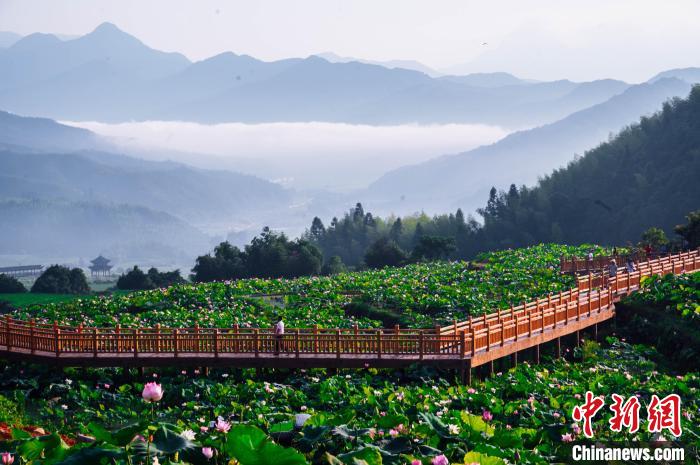 原標(biāo)題:福建建寧荷花怒放 吸引游客“為荷而來”