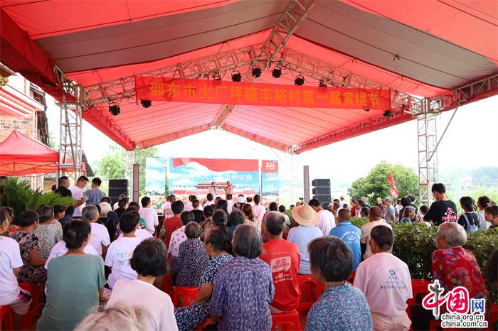活動(dòng)現(xiàn)場(chǎng),邵東市政協(xié)黨組書(shū)記、主席羅健康宣布豐裕村首屆品桃節(jié)開(kāi)幕。村民志愿者組織游客現(xiàn)場(chǎng)觀桃、品桃。舞蹈、花鼓戲、歌曲等由村里組織編排的精彩節(jié)目輪番上演,以文藝形式現(xiàn)場(chǎng)說(shuō)桃、唱桃,贏得了觀眾的陣陣掌聲。豐裕村黃桃鮮嫩多汁、香甜可口,吸引游客紛紛前去基地摘桃、購(gòu)桃,將活動(dòng)氛圍推向高潮。當(dāng)天,共銷(xiāo)售黃桃1萬(wàn)余斤,銷(xiāo)售金額9萬(wàn)余元。