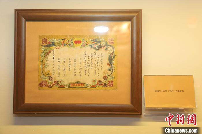 圖為博物館展出的民國(guó)時(shí)期的訂婚證書?!⒘?nbsp;攝