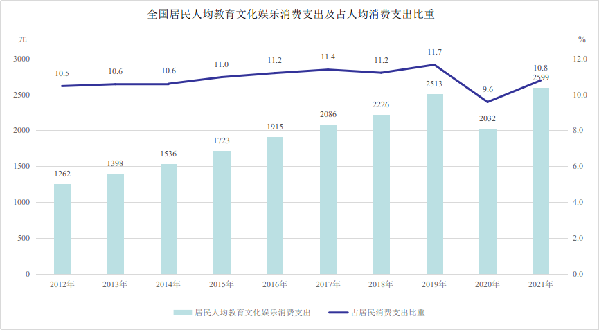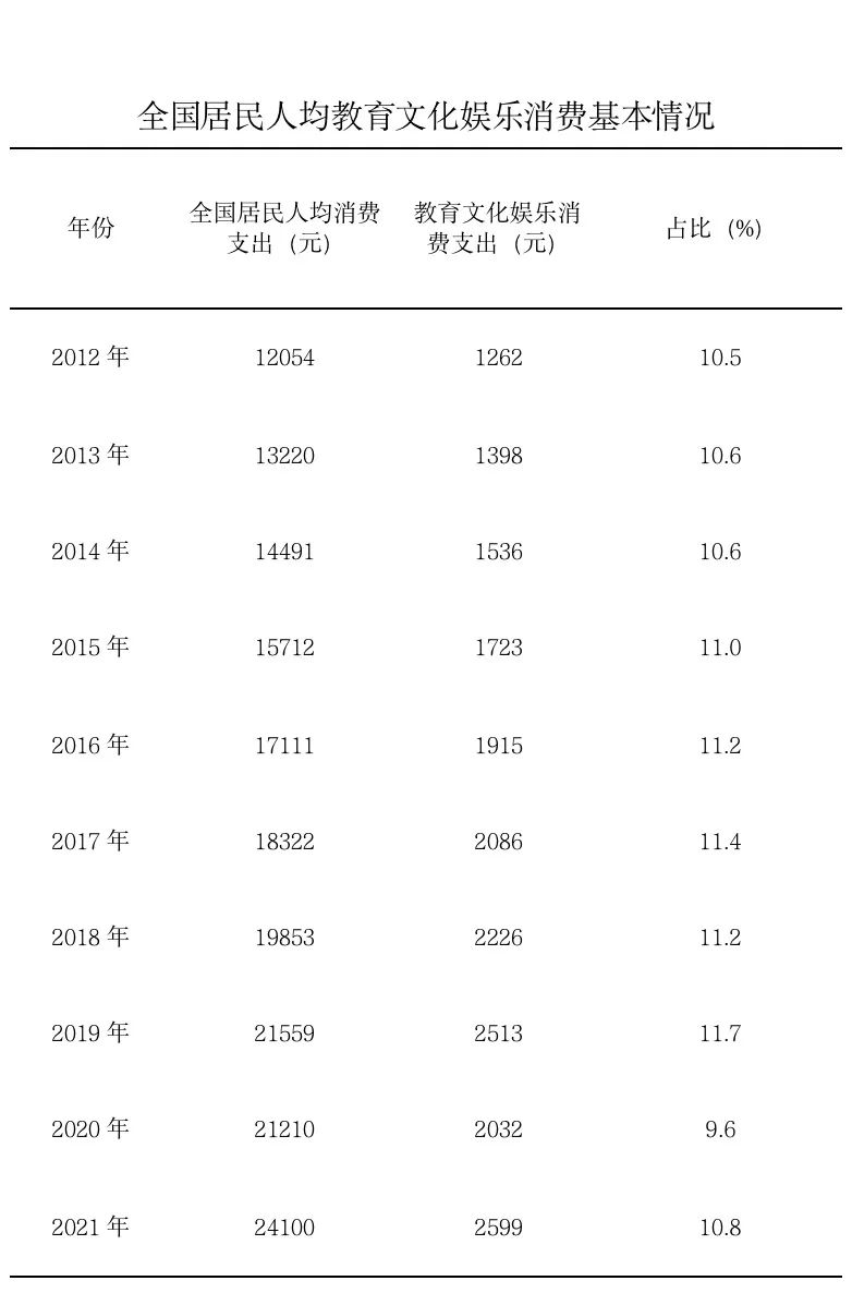 記者從文化和旅游部獲悉,十年來,文化產(chǎn)品和服務(wù)供給不斷豐富,促進(jìn)文化和旅游消費(fèi)取得顯著成效。2021年,全國(guó)居民人均教育文化娛樂支出2599元,較2012年增長(zhǎng)105.9%。