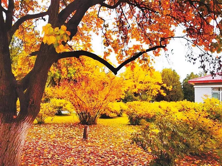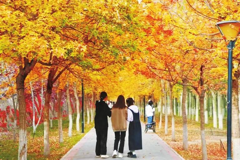 微風(fēng)輕拂,嬌黃的樹(shù)葉紛紛飄落,陽(yáng)光透過(guò)葉片滲出幾分清朗,這是專屬秋的浪漫。隨便鋪開(kāi)畫紙,蘸取一點(diǎn)點(diǎn)秋色,藍(lán)天、紅墻、金葉……都是最美的色調(diào)。古樸靜雅的校園彌漫著秋思,斑駁的陽(yáng)光灑在圖書館的墻上,在濃濃的書卷氣中把農(nóng)歷十月寫進(jìn)秋的詩(shī)行,有思念、有沉淀、有墨香……蘭州“醉”美的大學(xué)校園,每一片落葉都是美的化身,綿延了時(shí)光,溫情了步履……