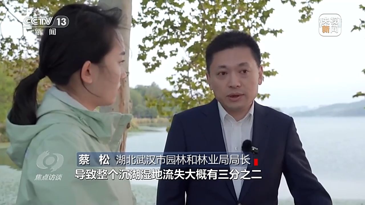 湖北武漢市園林和林業(yè)局局長 蔡松:圍湖造田、養(yǎng)魚,導(dǎo)致整個沉湖濕地流失大概有三分之二,比較嚴(yán)重。從2013年開始,武漢市加大對沉湖濕地的整治力度,通過生態(tài)補償?shù)姆绞?,整個退漁還濕達到了7.8萬畝。