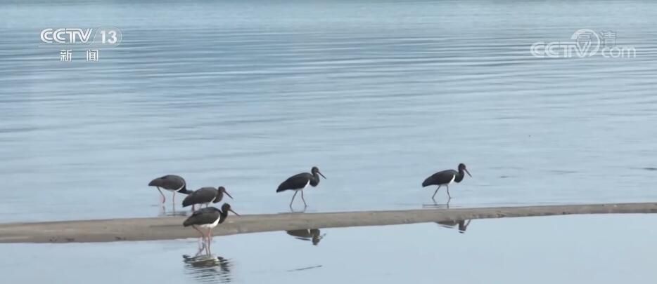 據(jù)了解,黑鸛對(duì)于棲息地很挑剔,要求水體食物必須豐富,水質(zhì)必須清澈。它們的到來是長(zhǎng)江江域生態(tài)改善的生動(dòng)見證。