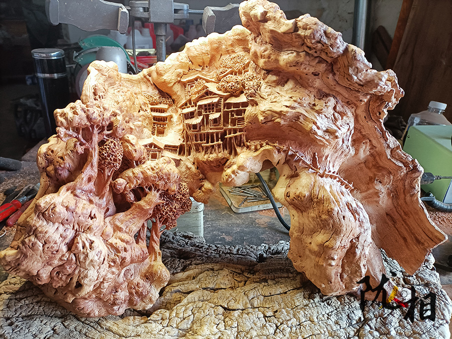 “根雕之美,七分天成,三分雕琢。雕刻過程中不宜破壞太大,要做到工蘊(yùn)于材,盡量貼近自然,但即便雕功只占三分,可也不是容易的事”。