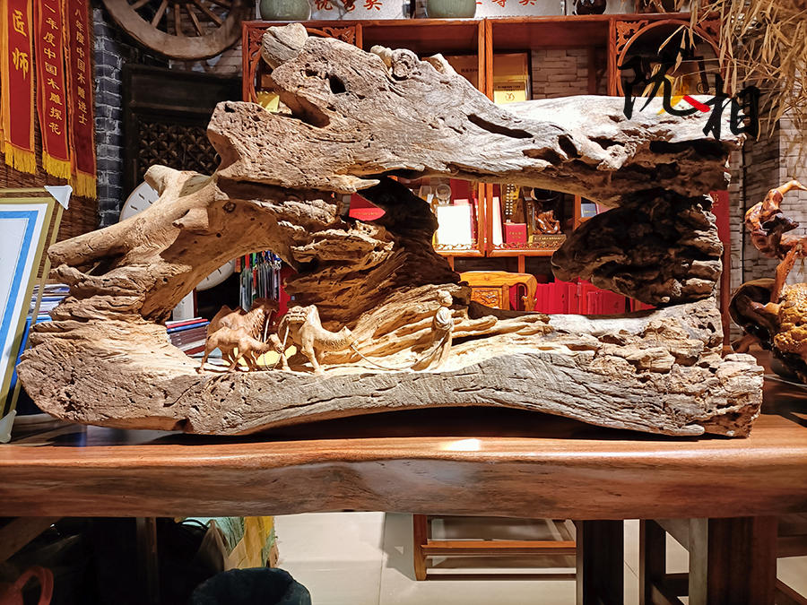 常年漂泊在外,甘博心里始終沒有歸屬感,回鄉(xiāng)發(fā)展的想法在他心底深種。2008年,他返鄉(xiāng)發(fā)展根雕事業(yè),乘著當(dāng)?shù)卮罅Πl(fā)展文化產(chǎn)業(yè)的東風(fēng),2015年創(chuàng)辦了崇信縣華夏神韻根雕藝術(shù)館,全身心致力于根雕創(chuàng)作。