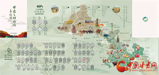據了解,為了深入推進文旅市場復蘇百日攻堅行動,加強產品開發(fā)供給,促進鄉(xiāng)村旅游升溫,省文旅廳于12月13日發(fā)布了2022版甘肅鄉(xiāng)村旅游手繪圖。手繪圖以“相約隴原促振興·富了口袋富腦袋”為主題,對2022年創(chuàng)建的6個鄉(xiāng)村旅游示范縣,60個文旅振興鄉(xiāng)村樣板村開發(fā)設計了電子“二維碼”,設置了甘肅省鄉(xiāng)村旅游60條四季精品線路,幫助游客品味鄉(xiāng)村風情、感知鄉(xiāng)村文化、體驗鄉(xiāng)村魅力,進一步展示甘肅鄉(xiāng)村旅游新形象、擴大鄉(xiāng)村旅游影響力,做亮“隴上鄉(xiāng)遇”鄉(xiāng)村旅游品牌,打造“隴上鄉(xiāng)遇”鄉(xiāng)村旅游全景圖。