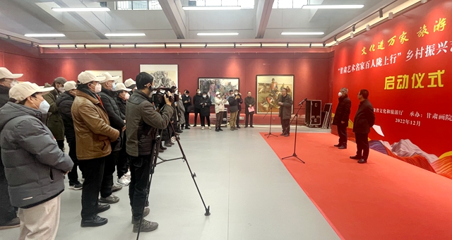 12月17日上午,“甘肅藝術(shù)名家百人隴上行”鄉(xiāng)村振興藝術(shù)創(chuàng)作工程采風活動在甘肅畫院正式啟動,來自全省各地的藝術(shù)家從蘭州黃河之濱,奔赴甘南、隴南兩地重點旅游示范村開展創(chuàng)作采風活動。省委宣傳部副部長、省文旅廳黨組書記何效祖出席啟動儀式并講話。省文化和旅游廳黨組成員、副廳長萬學科主持啟動儀式,甘肅畫院院長王萬成,甘肅文旅集團黨委副書記、工會主席王寧等出席啟動儀式。