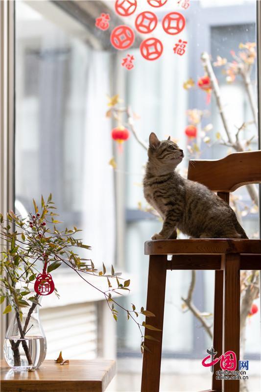 新剪的福字貼滿窗上檐下,人們隔著玻璃對(duì)望,會(huì)心一笑。