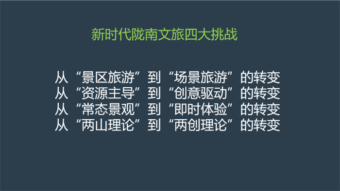 作為具備后發(fā)優(yōu)勢的隴南,在推進文旅康養(yǎng)產(chǎn)業(yè)發(fā)展的過程中,我們必須認識和應(yīng)對這四大轉(zhuǎn)變或調(diào)整,“謀定而動”,否則,如果我們還以傳統(tǒng)的方式追求建設(shè)景區(qū),有可能做出來的大項目,是過時的,過期的,是被當下的旅游消費者所遺棄的。