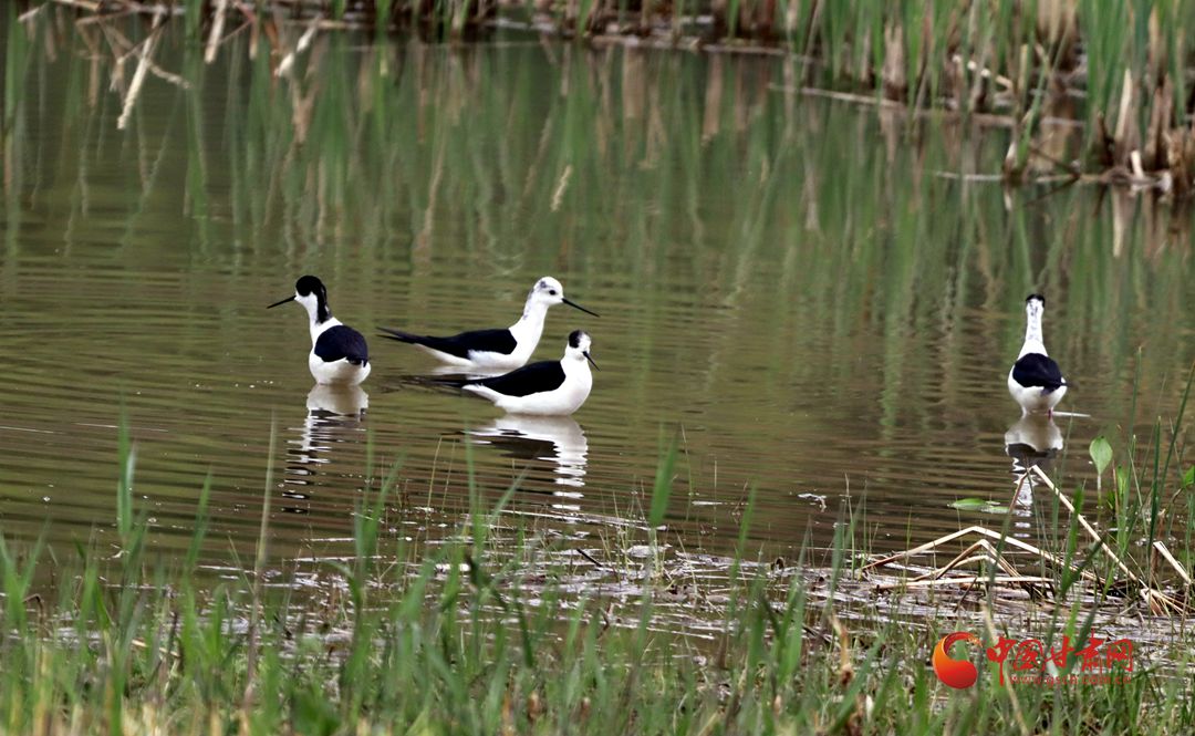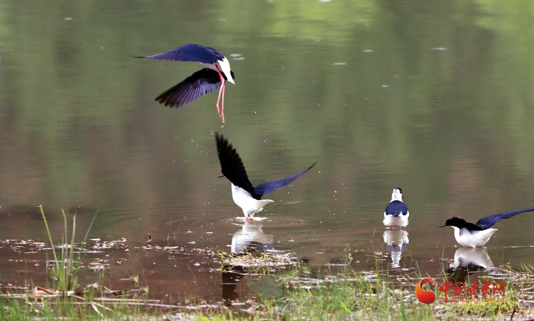 據(jù)了解,這種鳥叫黑翅長腳鷸,是候鳥的一種,春季于4月初至5月初遷來中國北方繁殖地,秋季于9-10月離開北方繁殖地往南遷徙。黑翅長腳鷸是一種涉禽(水鳥中的一類),喜歡成群結(jié)隊(duì),淺水而居,以小昆蟲、小魚、蝌蚪等為食。它還是一種惹人喜愛的水鳥,它的嘴細(xì)長而筆直,體白翅黑,對比分明,身姿綽約、體態(tài)修長,被譽(yù)為“鳥中模特”或者“長腿超模”。