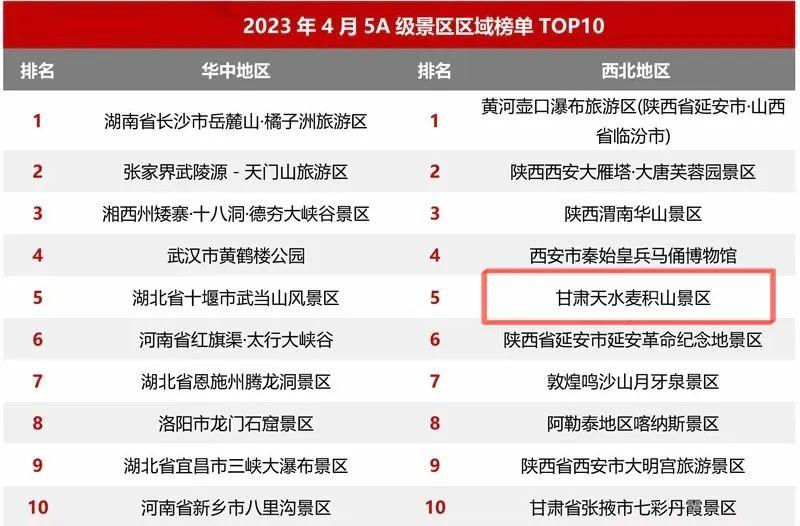 最新5A級(jí)景區(qū)百強(qiáng)出爐!麥積山大景區(qū)上榜!