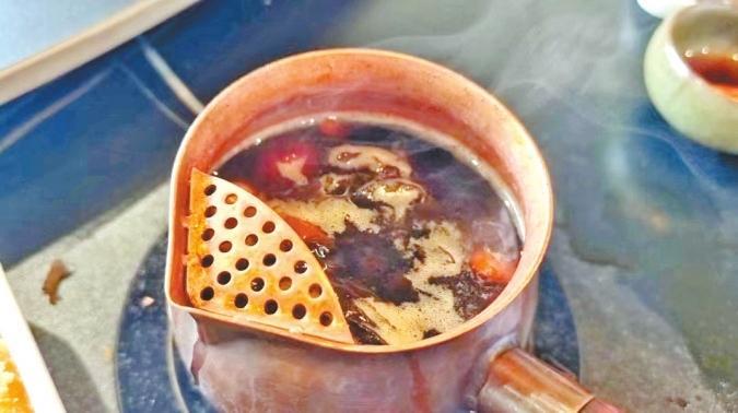 “‘茶圣’陸羽的《茶經(jīng)·五之煮》記載,煮茶的時候會放蔥、姜、棗、橘皮、茱萸、薄荷等佐料,所以現(xiàn)在罐罐茶所添加的配料,如紅棗、枸杞、桂圓、葡萄干、菊花、冰糖等,其實(shí)就是最原始的煮茶法的延續(xù)。”唐陳虓說。