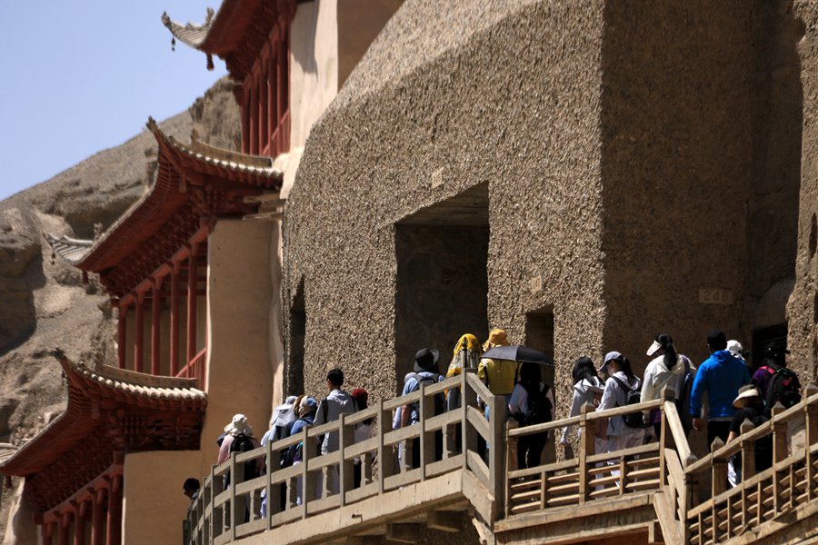 夏日時節(jié),眾多游客走進絲路敦煌,欣賞石窟藝術,觀看經典演藝,感受敦煌文化。