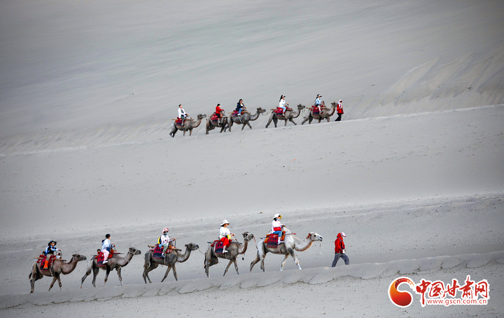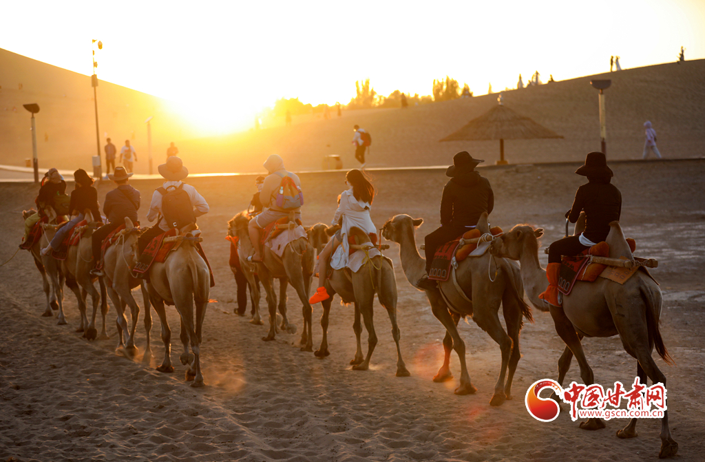 【隴拍客】敦煌駱駝排隊(duì)“上班” 千年絲路令游客“神往”