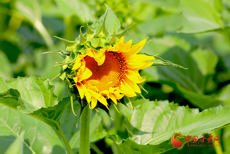 7月20日,位于文縣尚德鎮(zhèn)尹家壩村的矮化向日葵進(jìn)入盛花期,金燦燦的花朵競(jìng)相綻放,匯成金黃色海洋,引來(lái)成群的蝴蝶嬉戲、蜜蜂采蜜,生態(tài)宜居的美麗村莊鑲嵌其間,慕名而來(lái)的游客愜意賞花拍照、絡(luò)繹不絕。